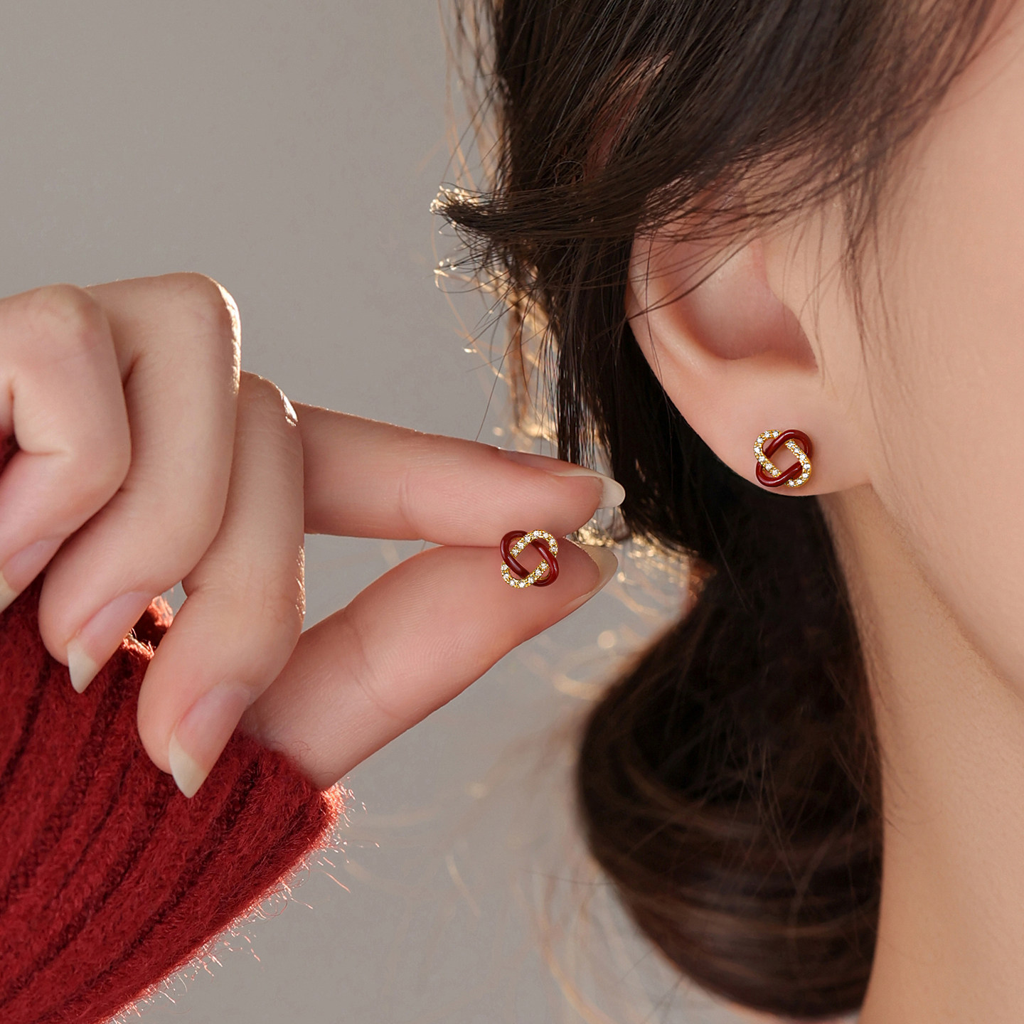 ARSIS Hongyun Nacai stud earrings original design earrings light luxury S925 silver earrings red
