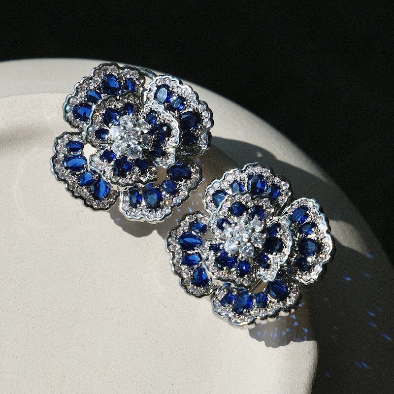 Antique line "Sapphire Camellia" Van Cleef Vintage jewelry Blue Zircon Heavy Industry Premium New Year's Ear Clips