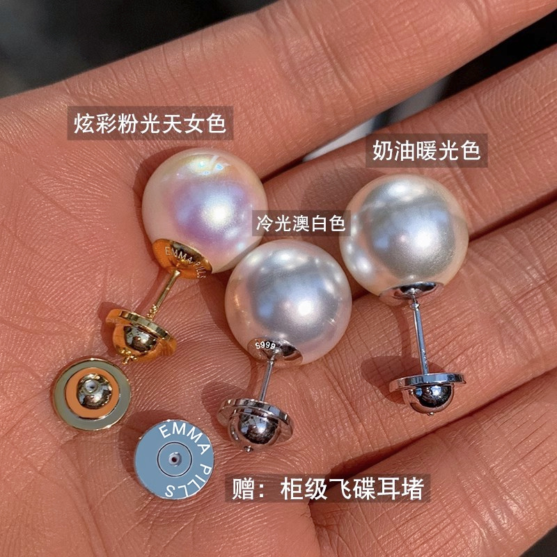 999 sterling silver Australian white round large pearl stud earrings for women 2025 new explosive light luxury high-end earrings earrings