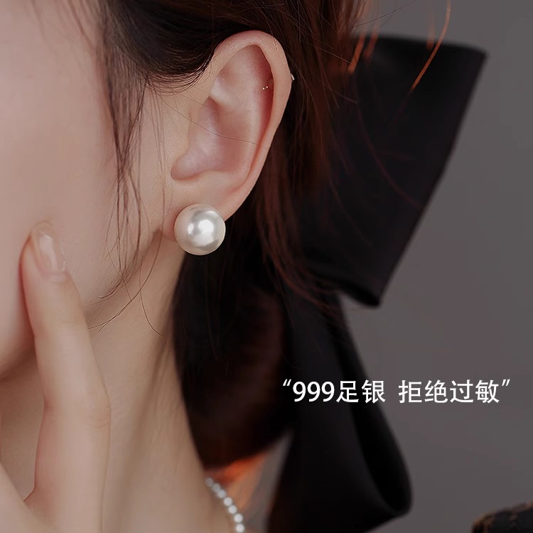 fever same pearl stud earrings 999 sterling silver Shijia earrings 2025 new explosive high-end light luxury round earrings