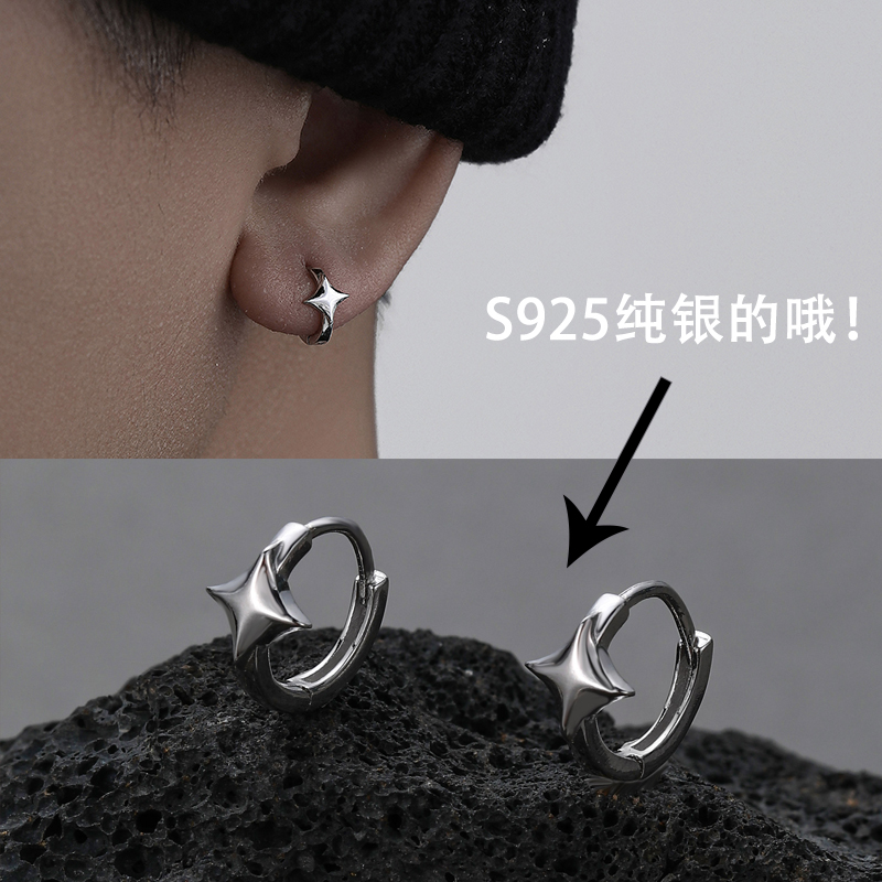 925 sterling silver earrings, 2024 new explosive men's simple stud earrings, ear piercings, earrings, high-end single