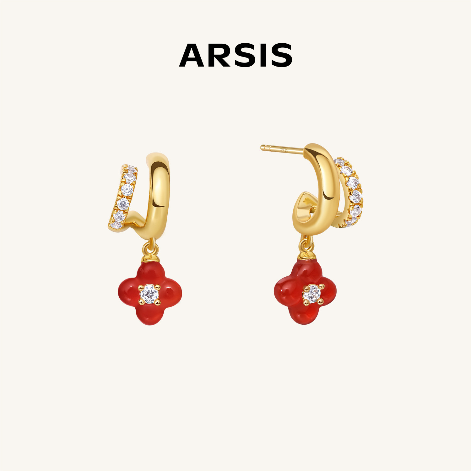 China Gold Central Creation Year of the Horse Natal Year Red Stud Female Pony Silver Earrings Horse Auspicious Wearing Item S925
