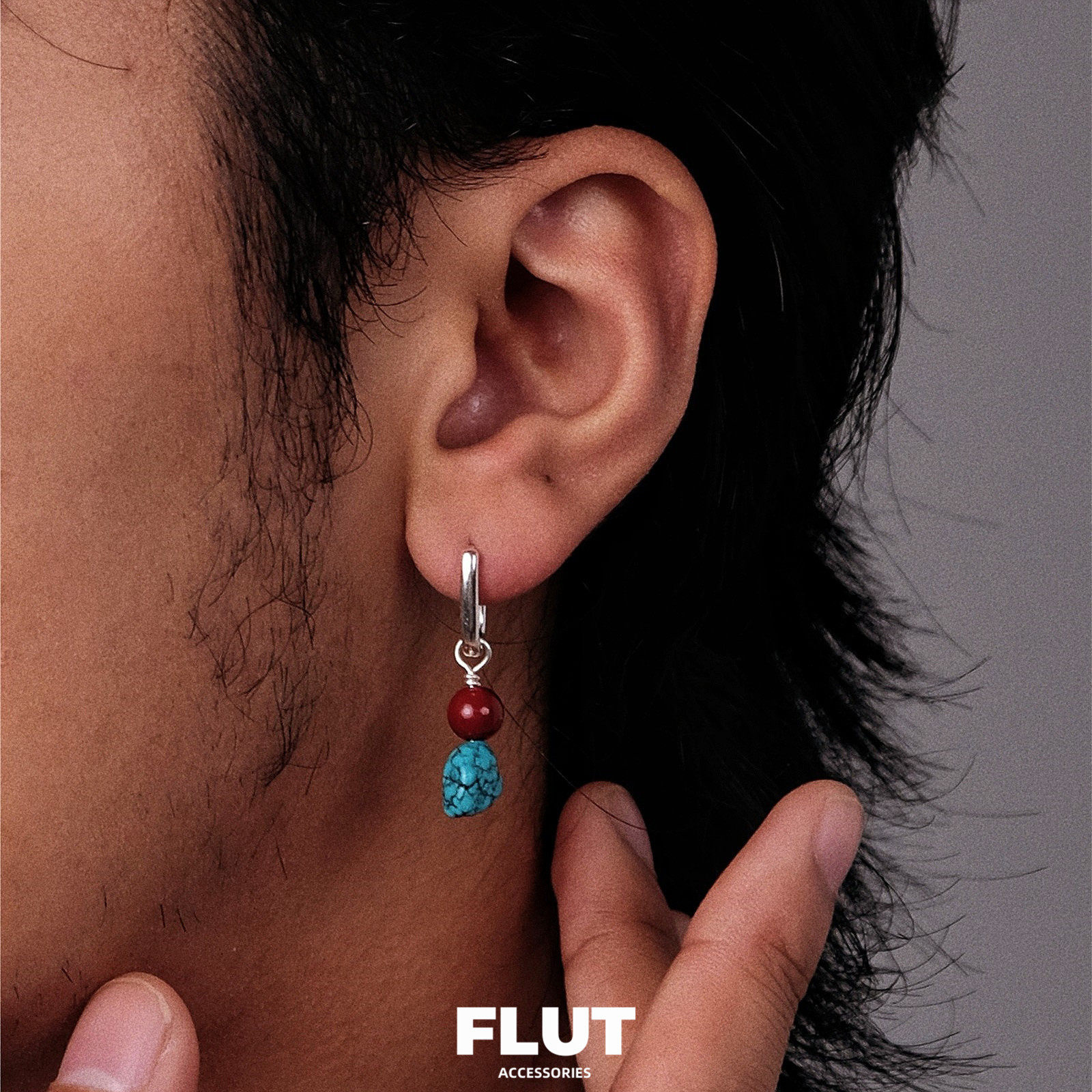 FLUT Original S925 sterling silver turquoise cinnabar earrings niche design Tibetan earrings for men and women couples