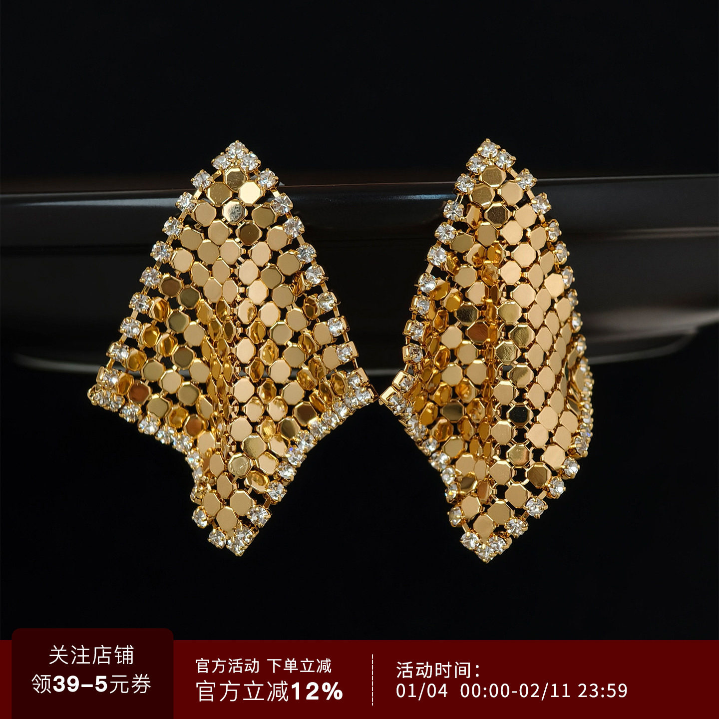 Magic carpet bursting scales, small square scarf, golden giant good-looking earrings, women's 2025 new autumn and winter exaggerated earrings, earrings