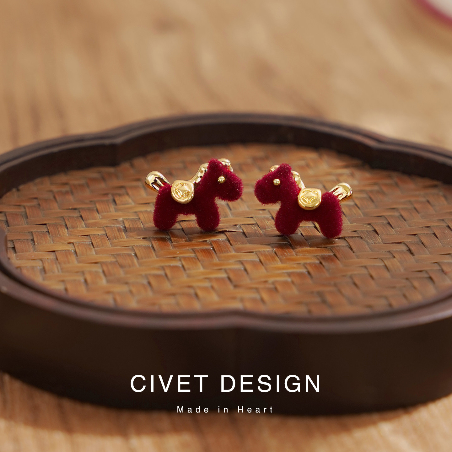 Forbidden City Taobao|Good luck at the head of red agate earrings, red earrings, newlywed marriage, new Chinese birthday gift woman