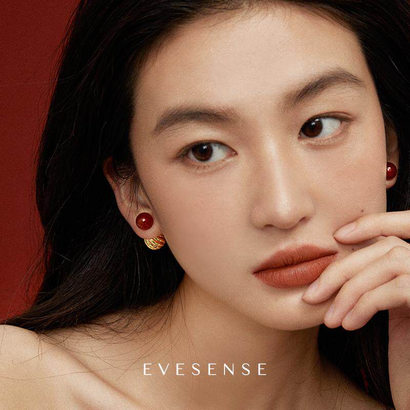 EVESENSE Monica series red agate double ball earrings high-end retro two-wearing light luxury new earrings