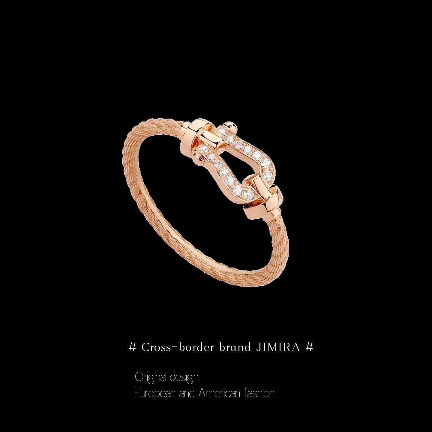 Hong Kong Horseshoe Buckle Ring Women's 18K Rose Gold Niche Design High-end Layered Diamond-Encrusted Nautical Buckle Ring Trend