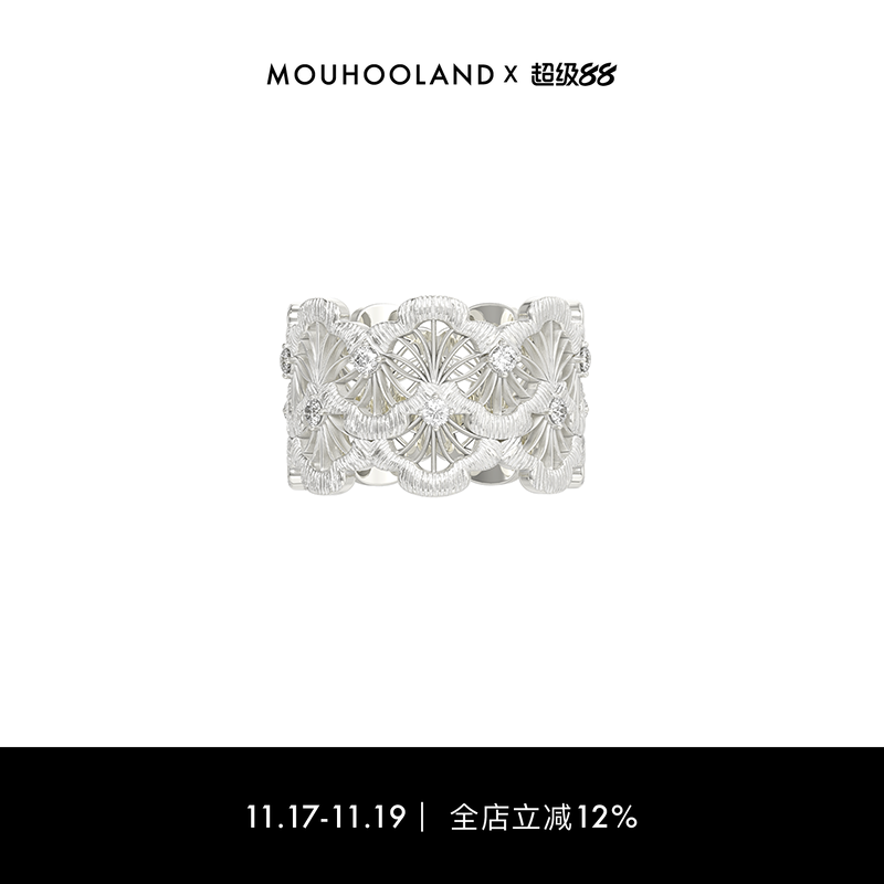 Mouhooland/Twilight Star Matching Double Lace Fan Ring Original Design 925 Silver Ring