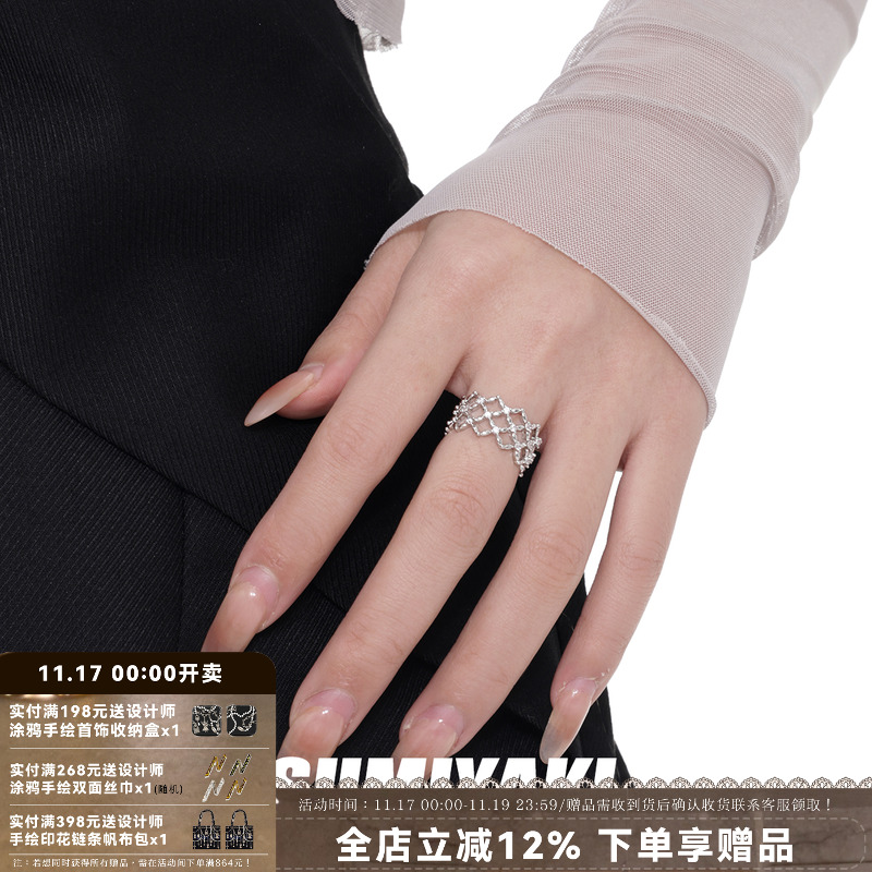 SUMIYAKI original hollow diamond zircon ring light luxury niche fashion plain ring couple opening ring gift