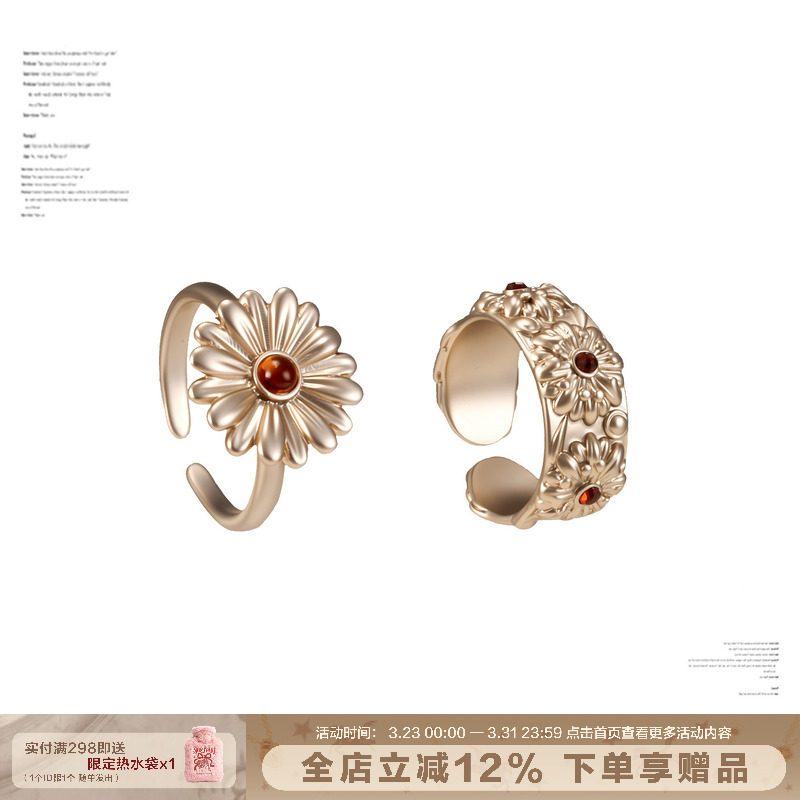 SUMIYAKI Daisy Series French Vintage Ring Opening is adjustable