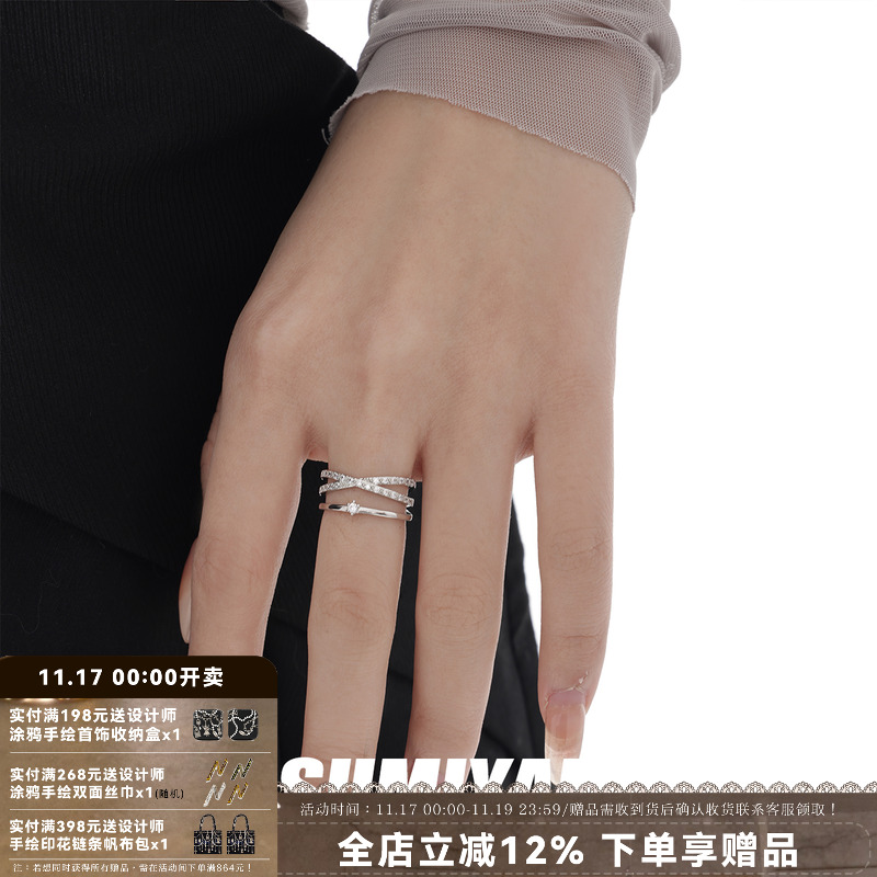 SUMIYAKI original silver cross zircon double ring light luxury niche fashion plain ring couple pair ring