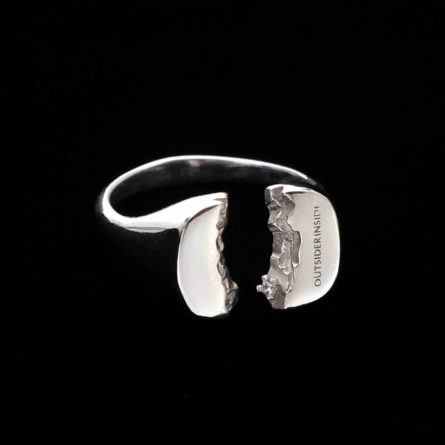 OUTSIDERINSIDE Chipped Notched Zircon Ring 925 Silver Polished Process FLAW Series