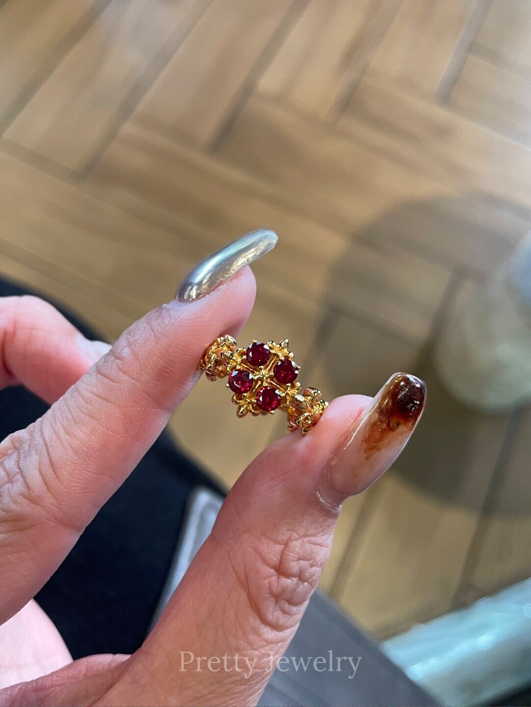 Baroque Ruby Iris Ring 925 silver plated with thick gold