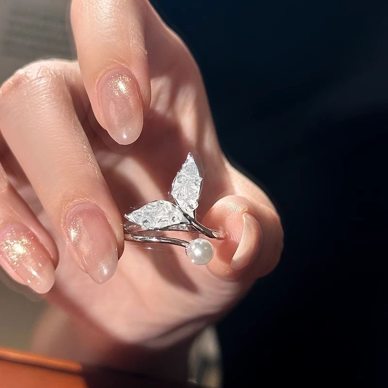 Mermaid ring summer zircon fishtail opening ring women's niche design light luxury high-end sensory ring index finger ring