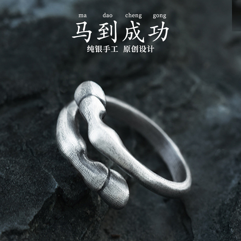 Silver original "Horse to Success" Year of the Horse Natal Year Ring for Men and Women 999 sterling silver men's foot silver high-end sense