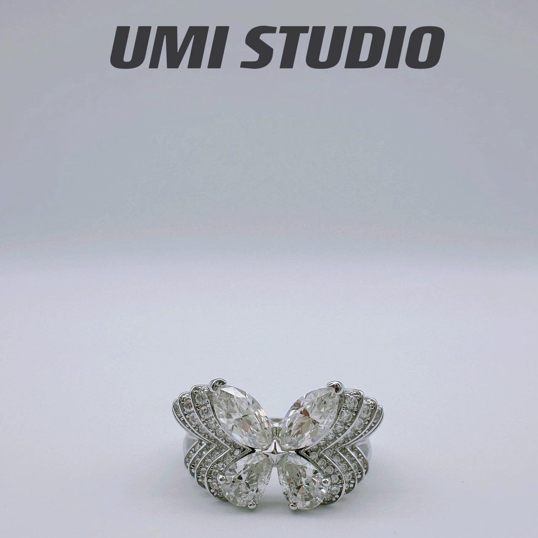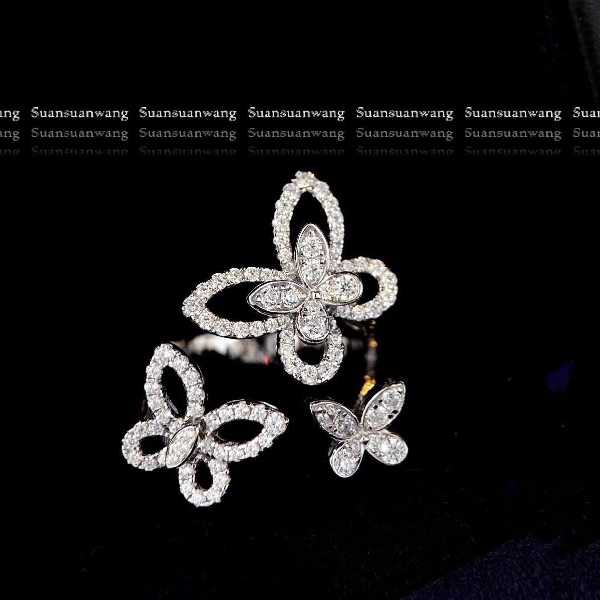 Super beautiful! Full diamond phantom butterfly trio ring 925 silver ring plated 18k white gold opening adjustable wedding band for women