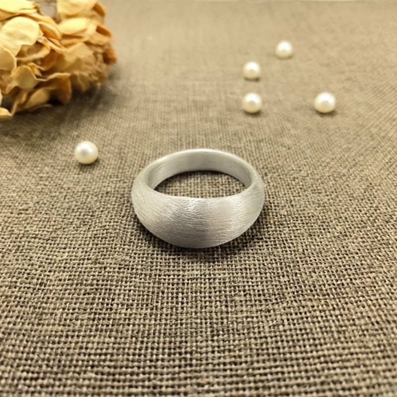 Pure silver 999 steamed bun ring all-over sterling silver ring frosted brushed chubby silver ring ins versatile