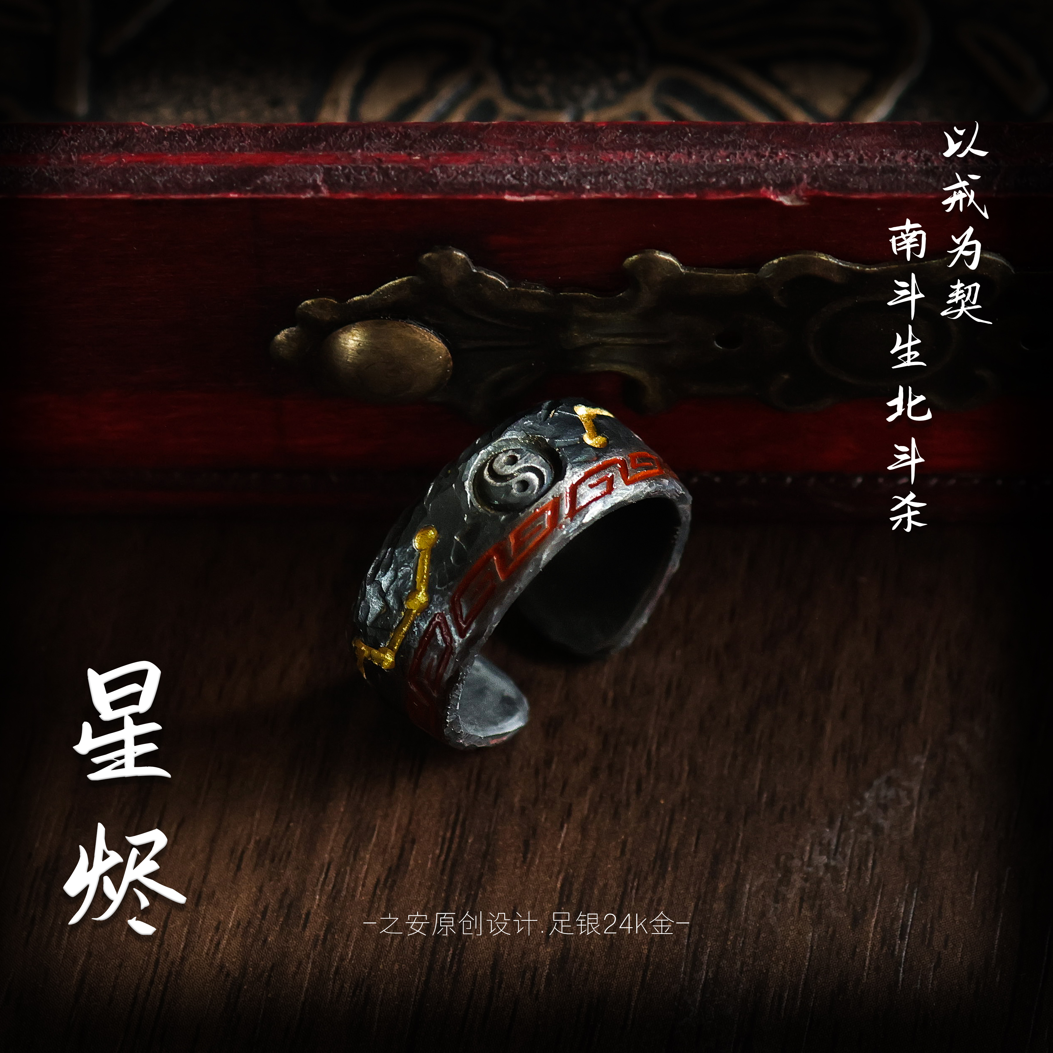 Ossuary's "Butterfly Eclipse Ridge" designer co-branded niche dark butterfly sterling silver ring co-produced by Guling