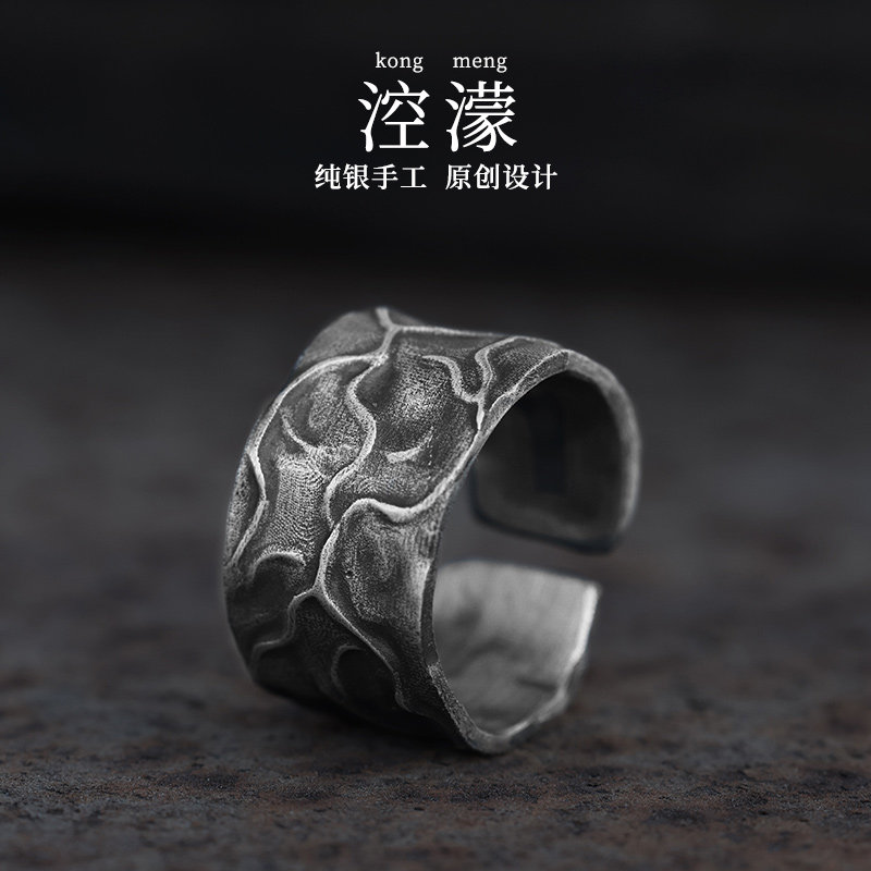 Silver original "Lingmeng" 999 sterling silver handmade plain ring men's niche unique men's ring wide-faced boys