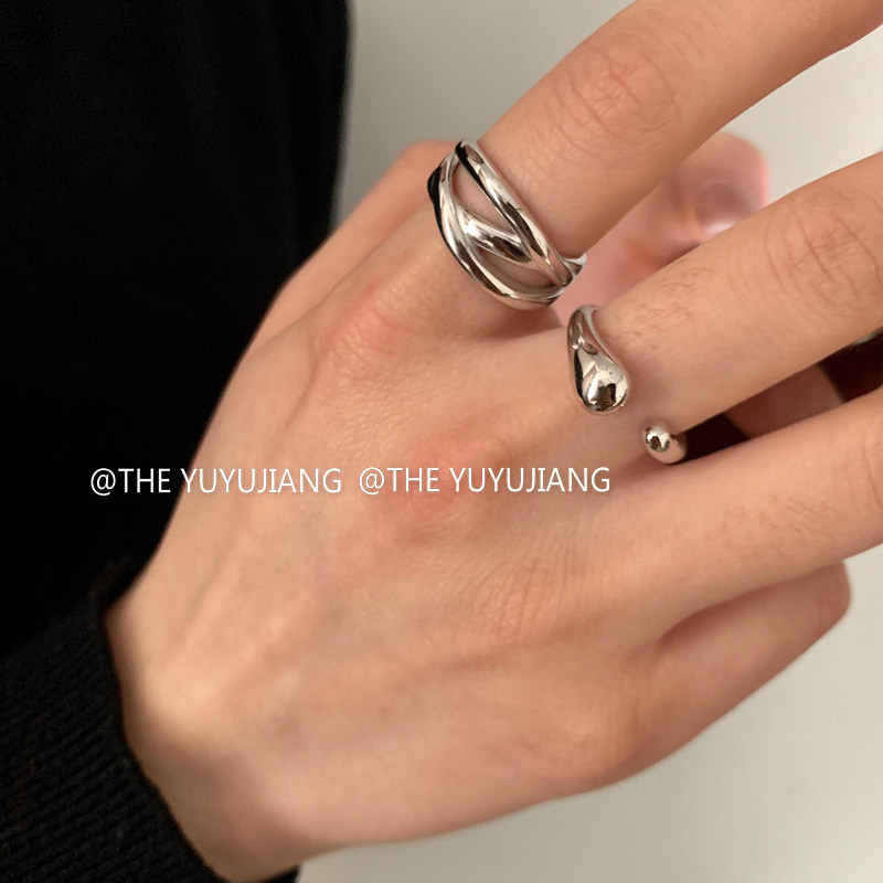 YUYUJIANG925 sterling silver niche design minimalist cool wind line cross ring women's drop opening ring