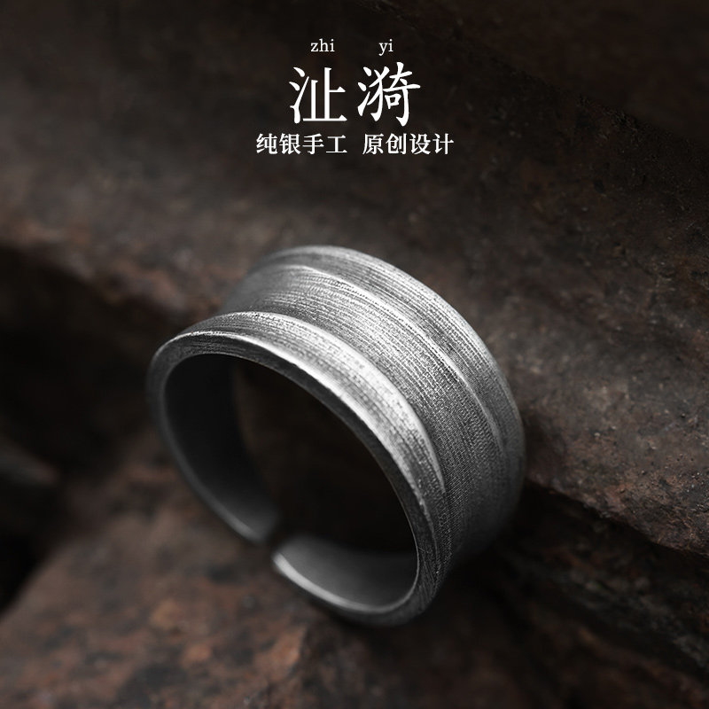 Silver original "Zhiyi" wide face ring men's 999 sterling silver single cold wind men's foot silver niche men's ring