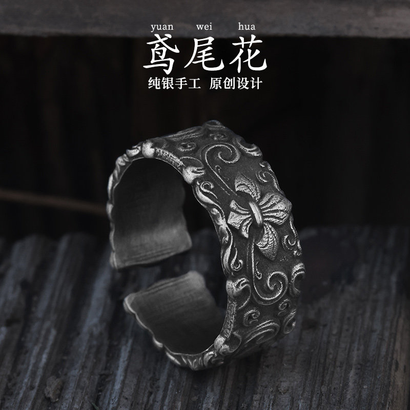 Silver original "Iris" ring men's 999 sterling silver men's Chinese style retro men's high-end men's ring