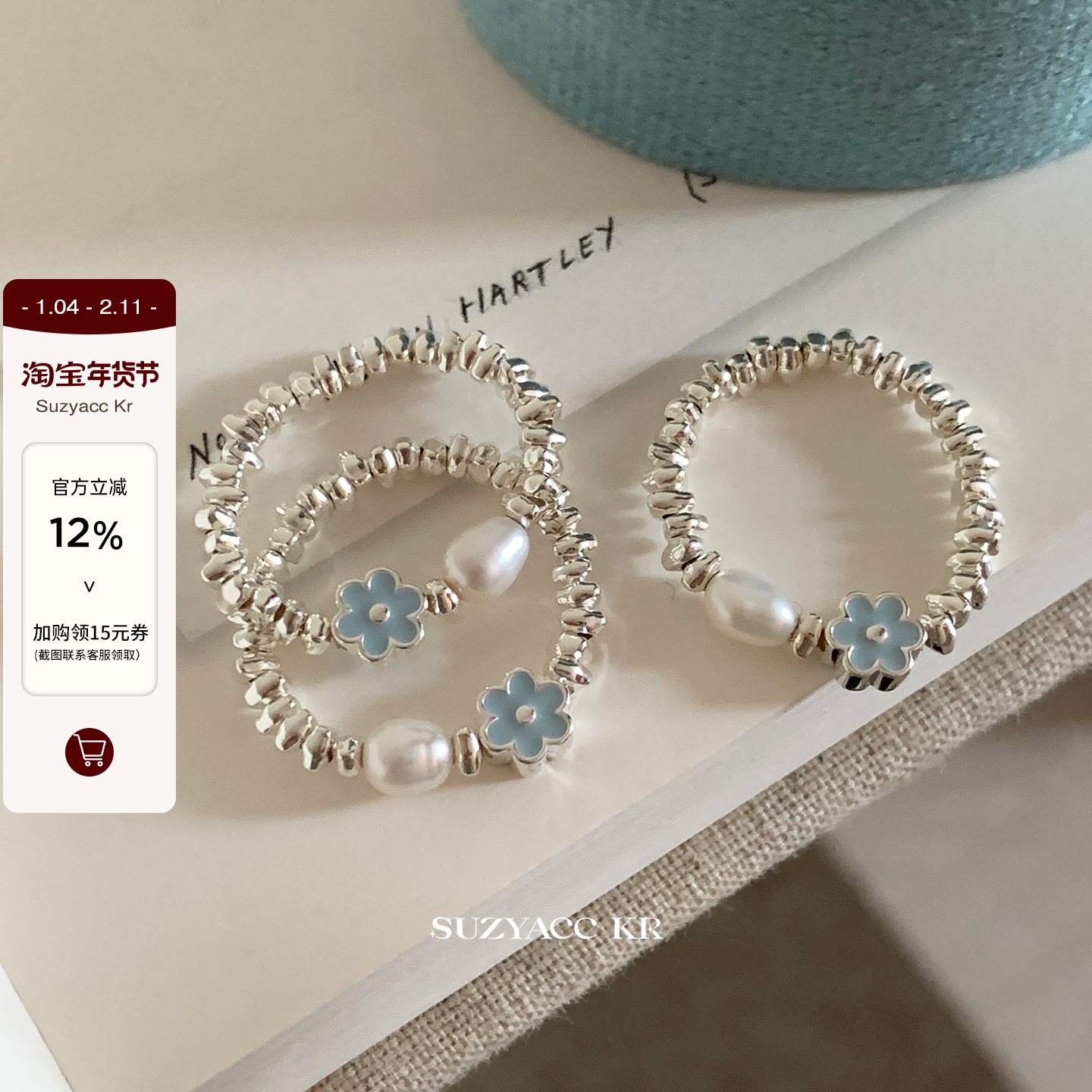 suzyacc kr fresh drop glaze small flower freshwater pearl sterling silver ring niche design simple high-end index finger ring