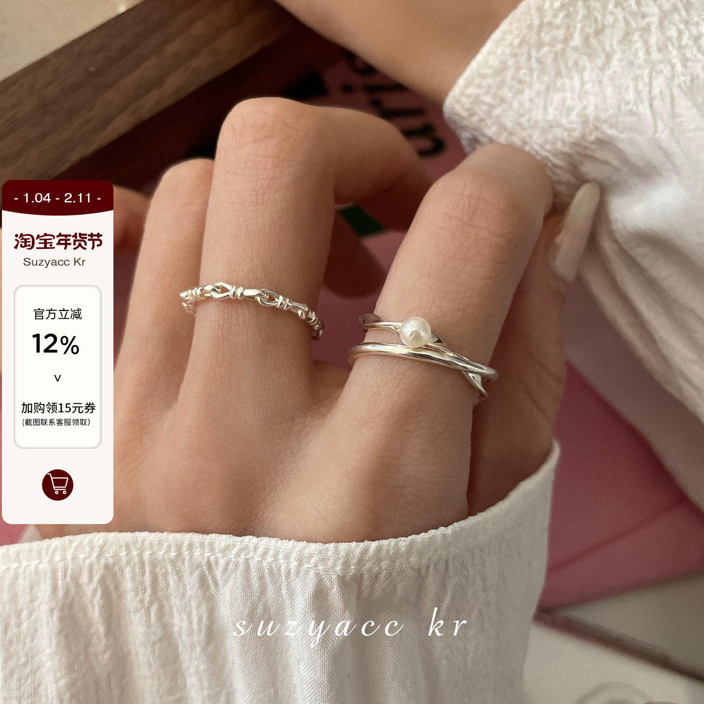 Suzyacc kr niche design premium freshwater pearl sterling silver thin ring fashion personality index finger ring is adjustable