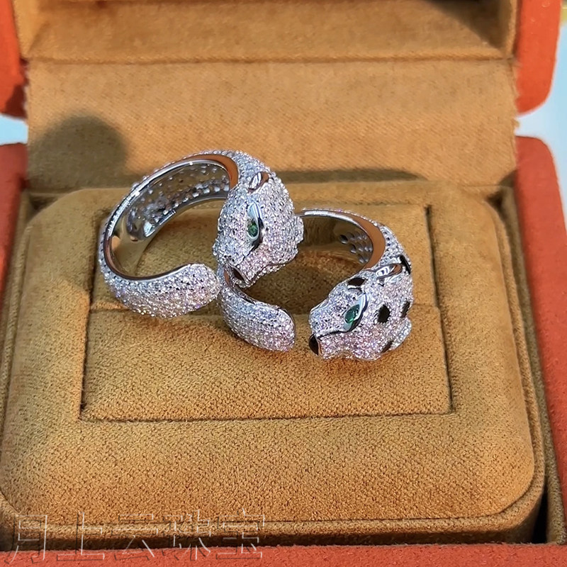 925 sterling silver leopard head ring European and American ins light luxury full diamond green eyes zircon diamond ring wedding dinner cheetah ring