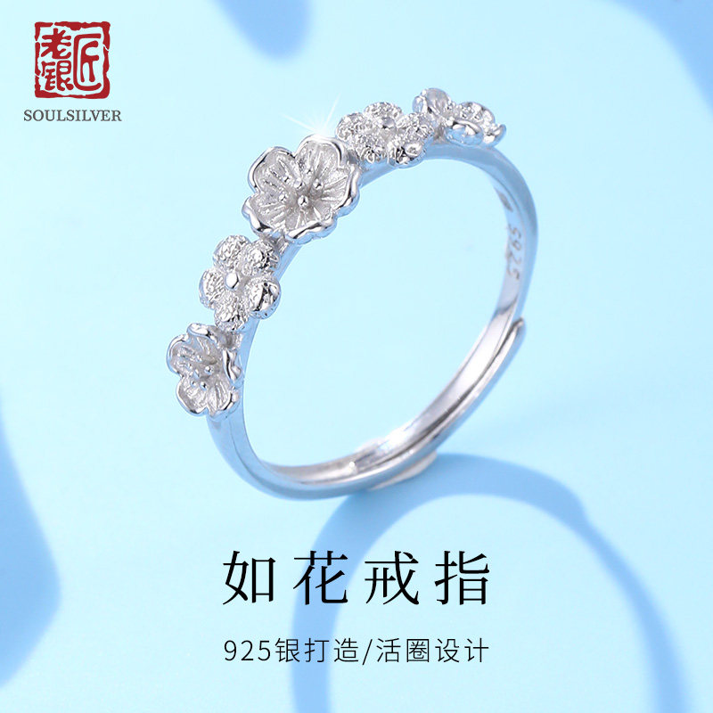 Old silversmith s925 silver ring female small flower light luxury niche design sterling silver women's ring ring to send girlfriend to girlfriend