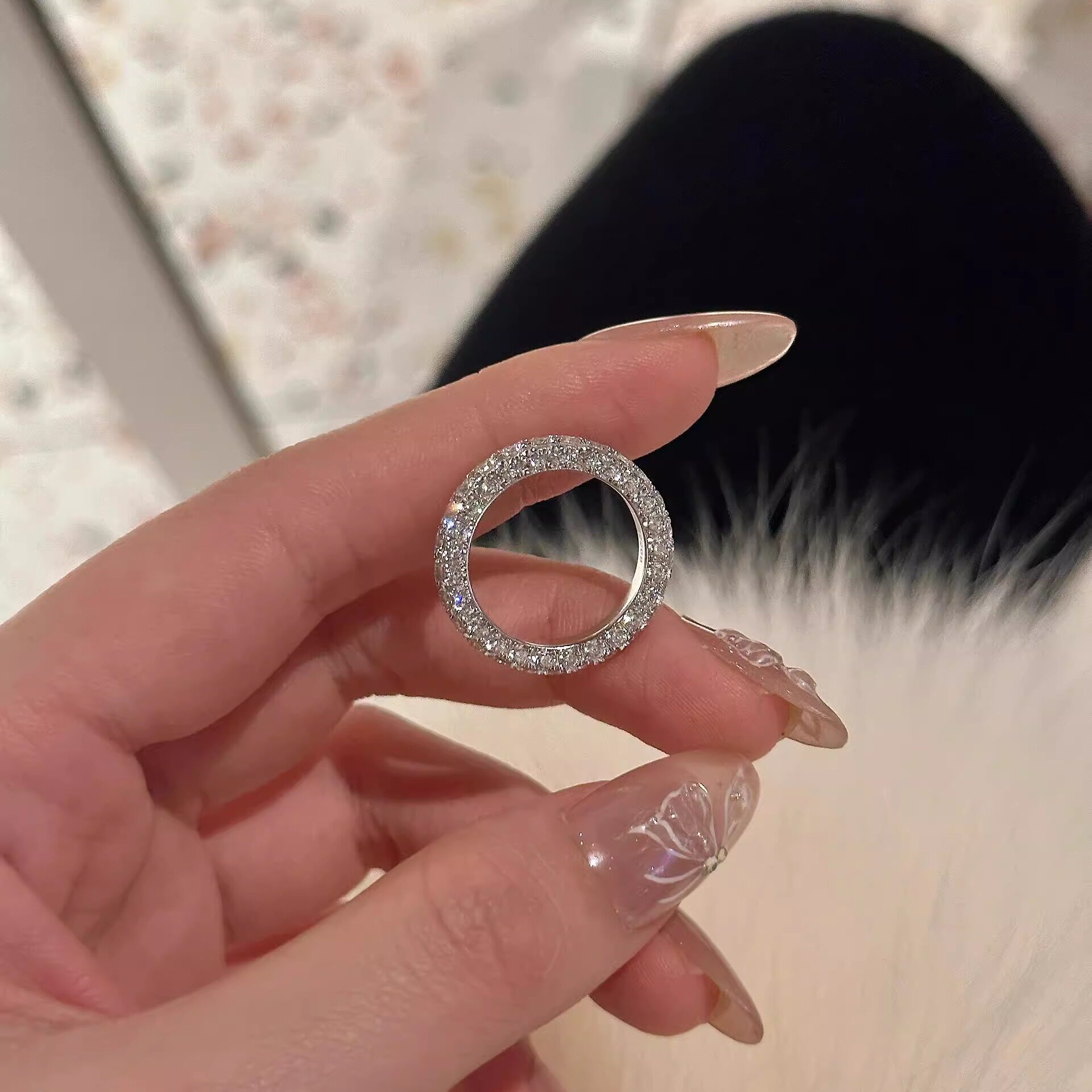 "Donut" full diamond ring S925 silver super glitter diamond ins style layered with light luxury temperament high-end ring