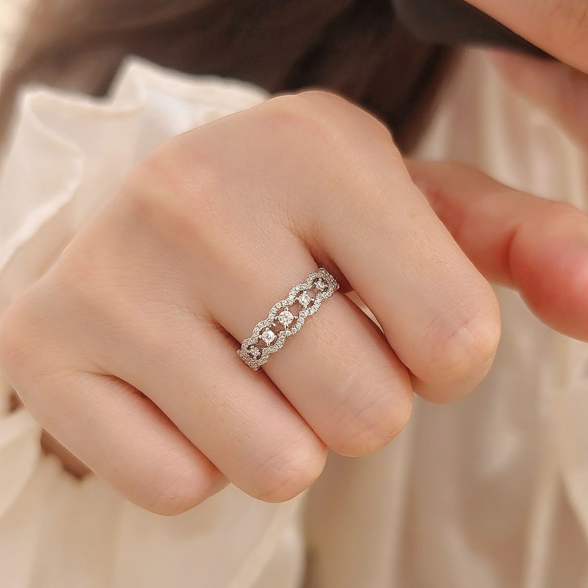 Lace diamond ring 925 sterling silver light luxury luxury niche design ring gypsophila gentle and bright index finger