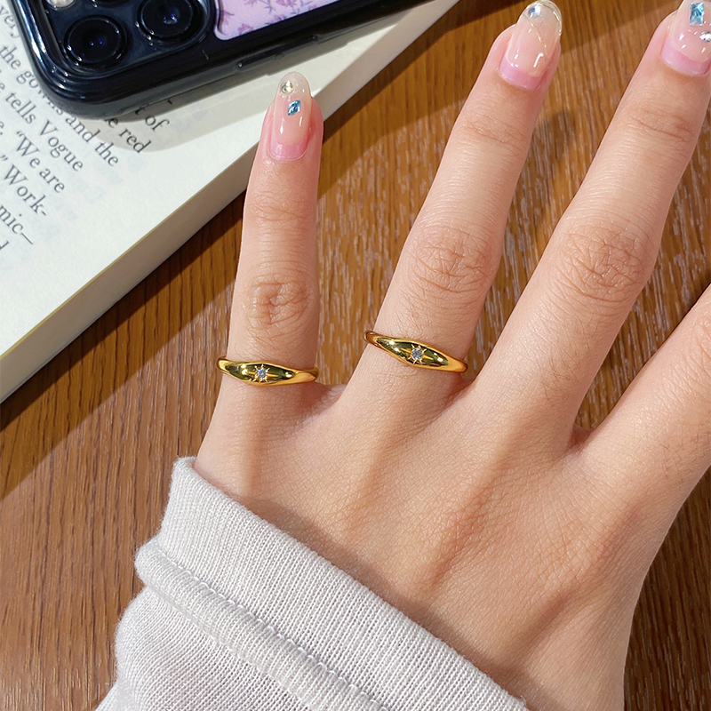 Vintage eight-pointed star ring female niche design 925 sterling silver gold slipper plain gold diamond ring high-end index ring