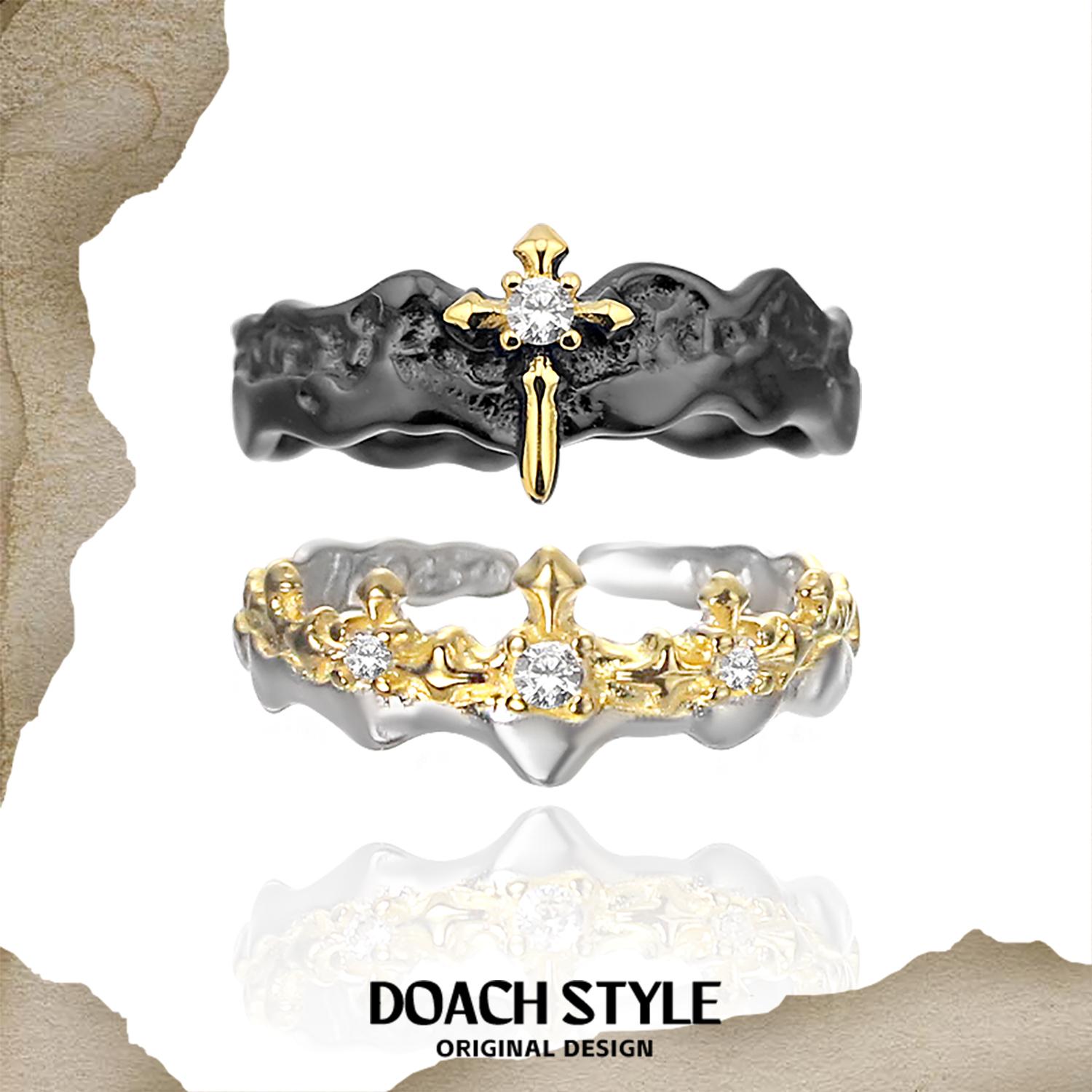 DOACH Princess Knight s925 sterling silver couple ring niche design black and white premium couple ring adjustable