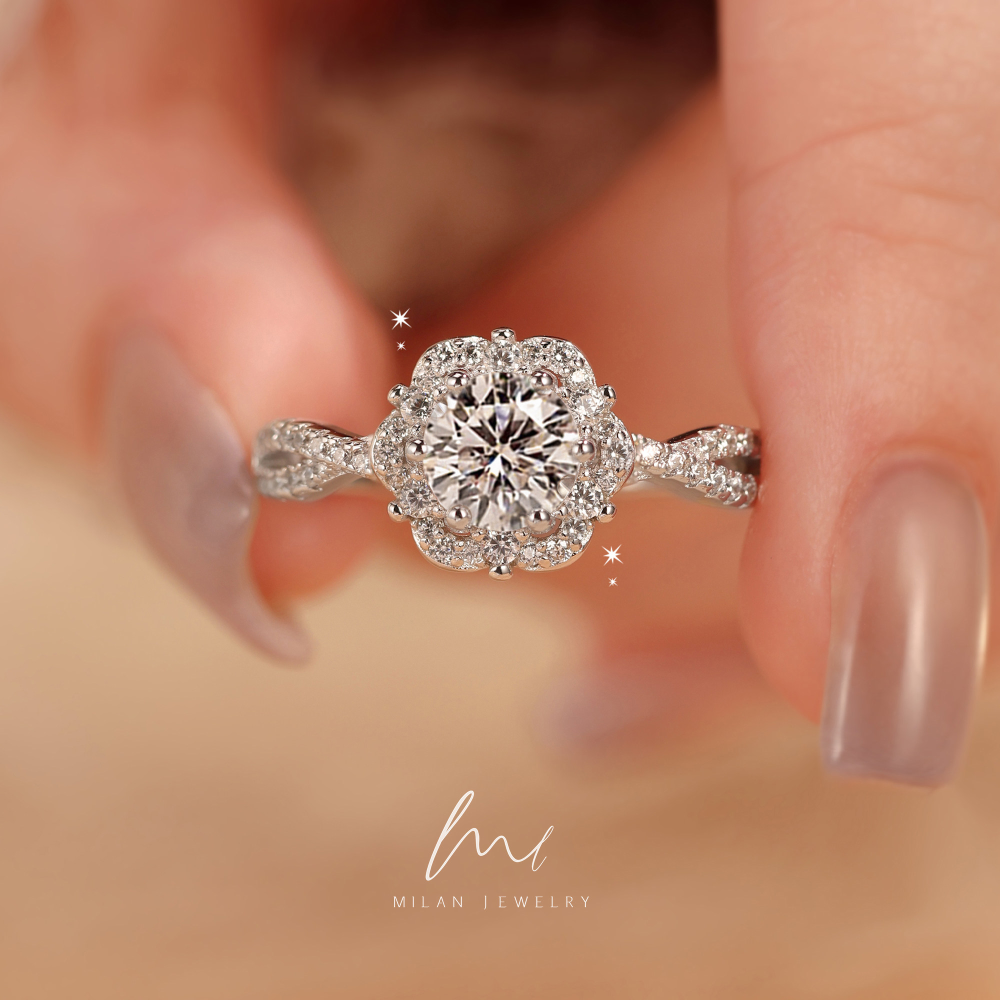 AHCHOO Quiet Luxury Super S Simple Diamond Set 5 Carat Moissanite Ring Premium S925 Silver Ring Gift for Women