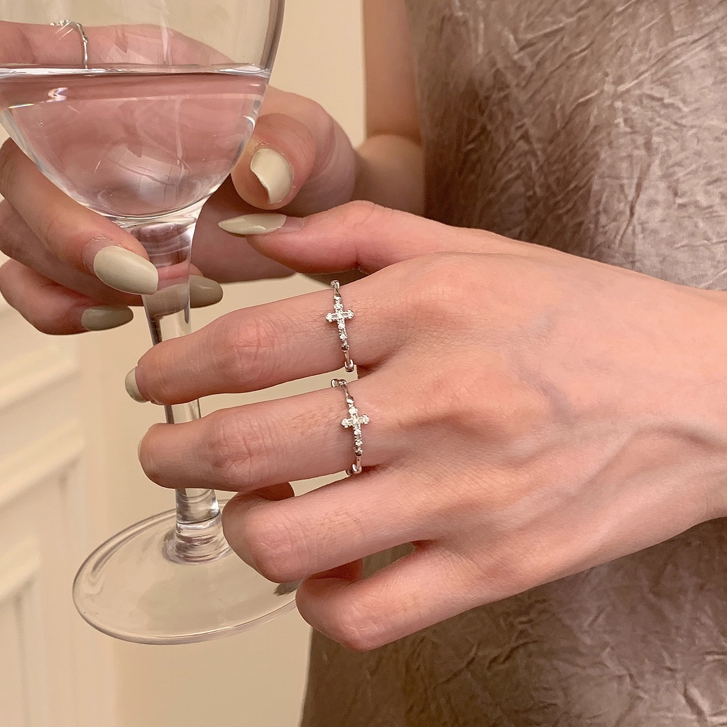Lunar moon sea glitter diamond cross ring S925 sterling silver opening adjustable high-end ins temperament woman