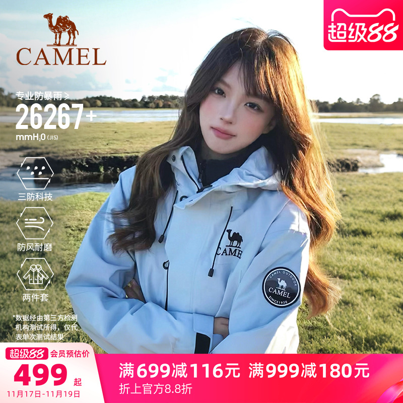 Camel outdoor 3-in-1 jacket women's 2025 autumn and winter windproof and rainproof black travel hiking suit jacket for men