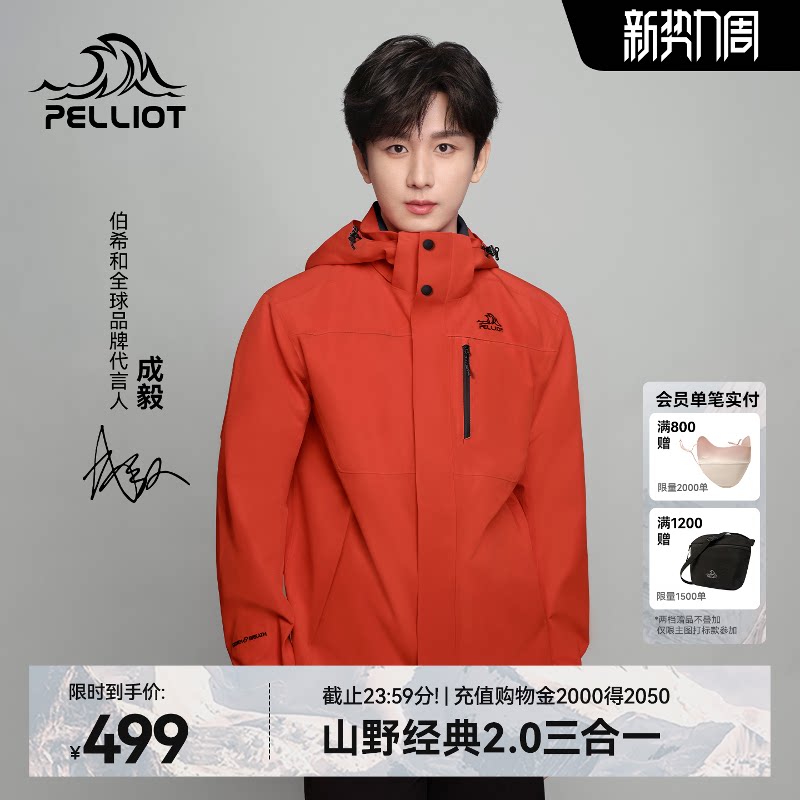 [Cheng Yi same style] Bo Xi and Mountain Wild 2.0 Danxia Red Jacket Men's 3-in-1 Outdoor Windproof Jacket Women