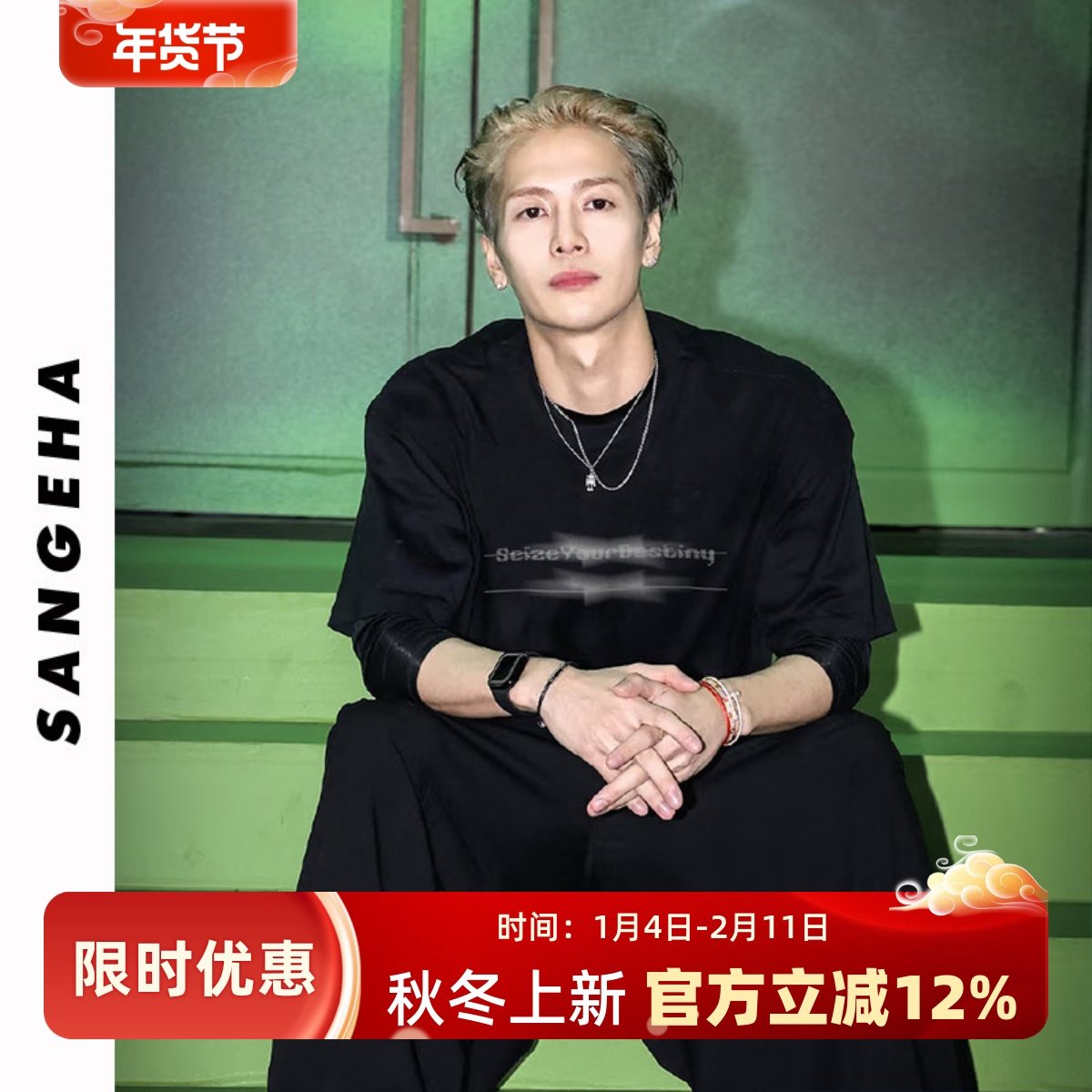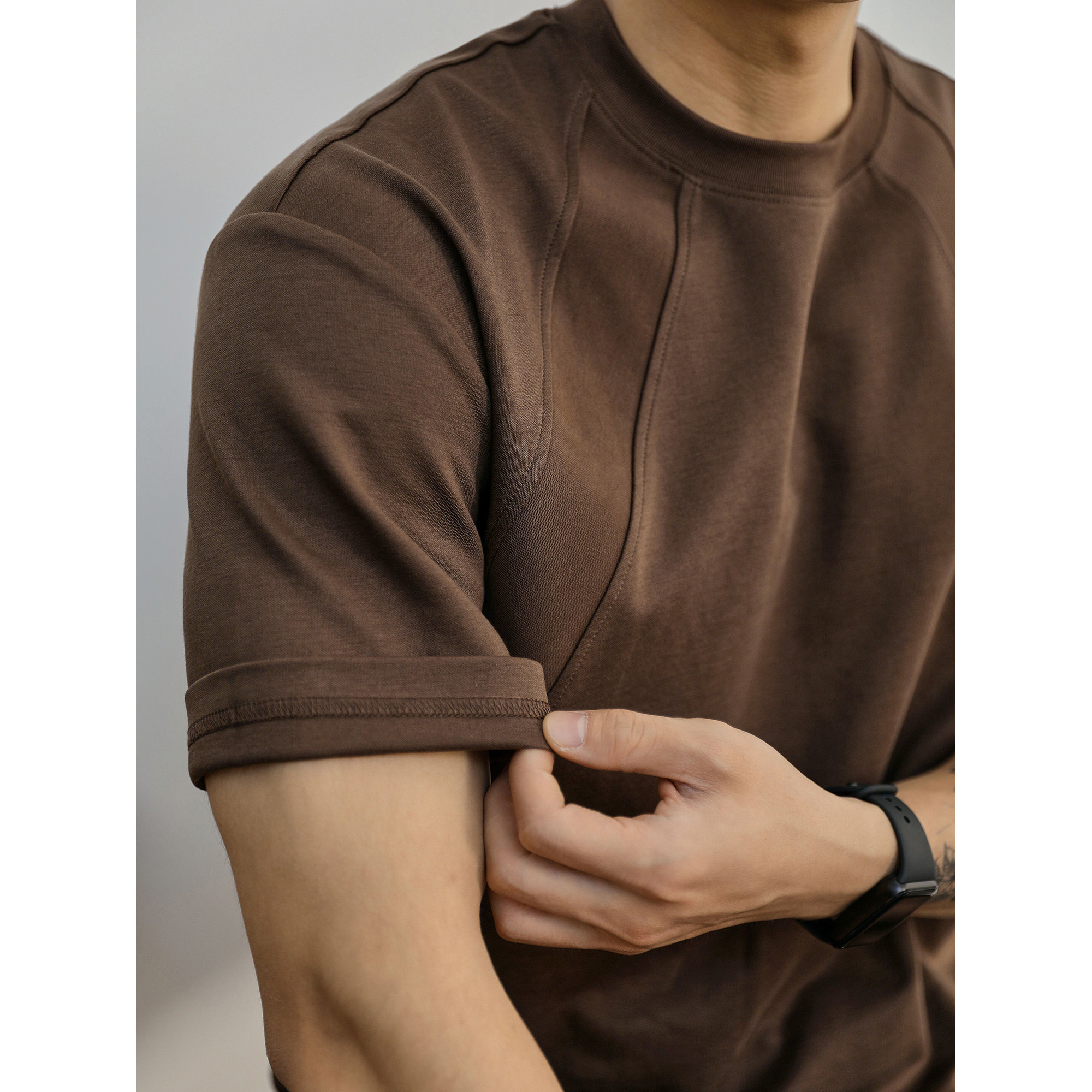 Wang Jiaer's same semi-turtleneck silhouette T-shirt short sleeve men's 310g heavy loose dropped shoulder minimalist solid color cotton model