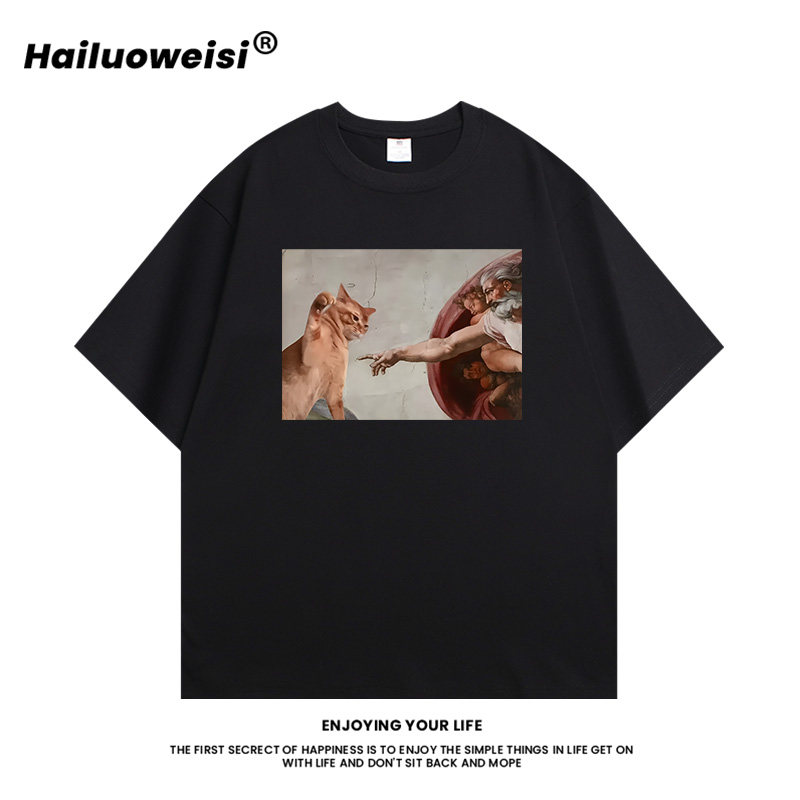 Make money for charity 3A260g pure cotton double yarn! American oversize short-sleeved T-shirt for men and women couples