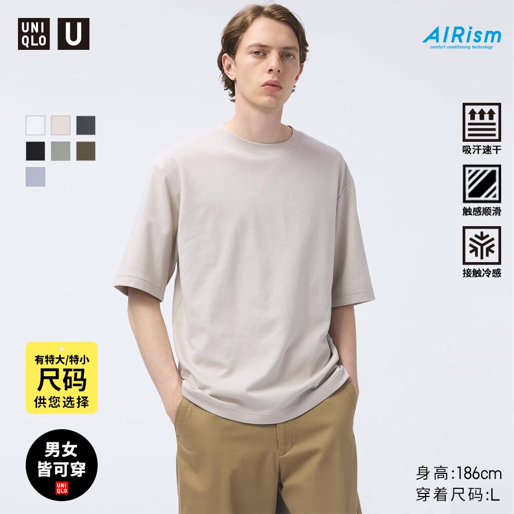 Uniqlo Men's and Women's Master T AIRism Loose Crew Neck T-Shirt Five-quarter Sleeve Short Sleeve 475355