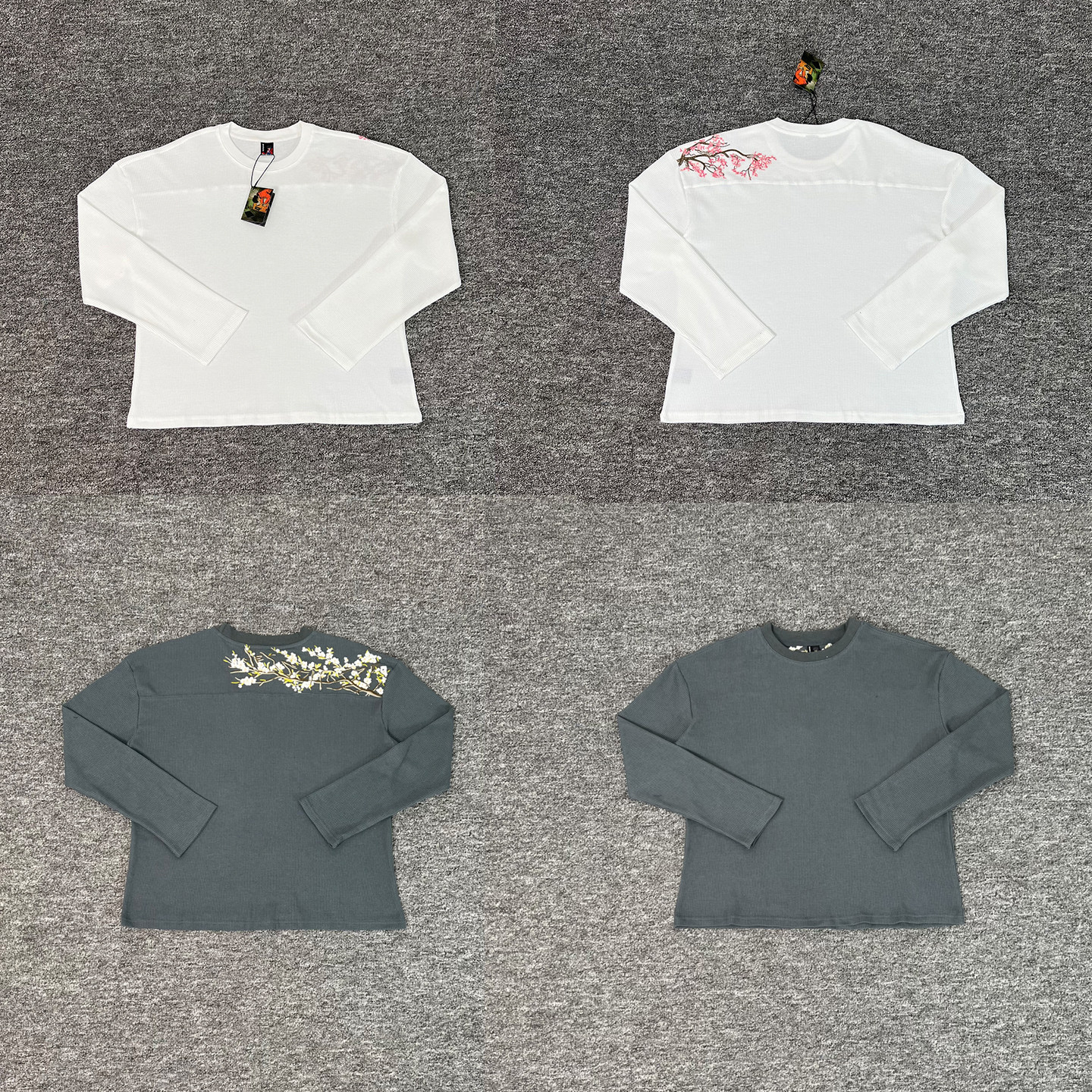 Derschutze Blossom Cherry Blossom Waffle Long Sleeve 2025 New Pullover Crew Neck Top Spring and Autumn Trend