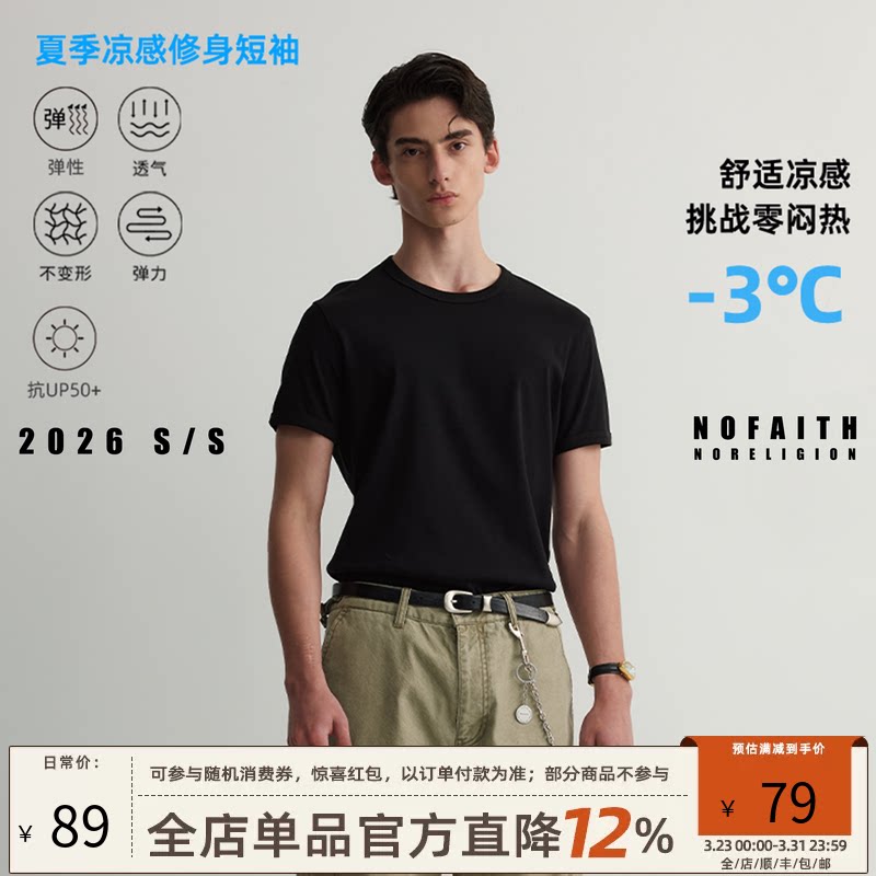 NOFAITH Straight Shoulder Small Neckline Slim Threaded Small Cuff T-Shirt Men's Summer Cool Fitness Slimfit Short Sleeves
