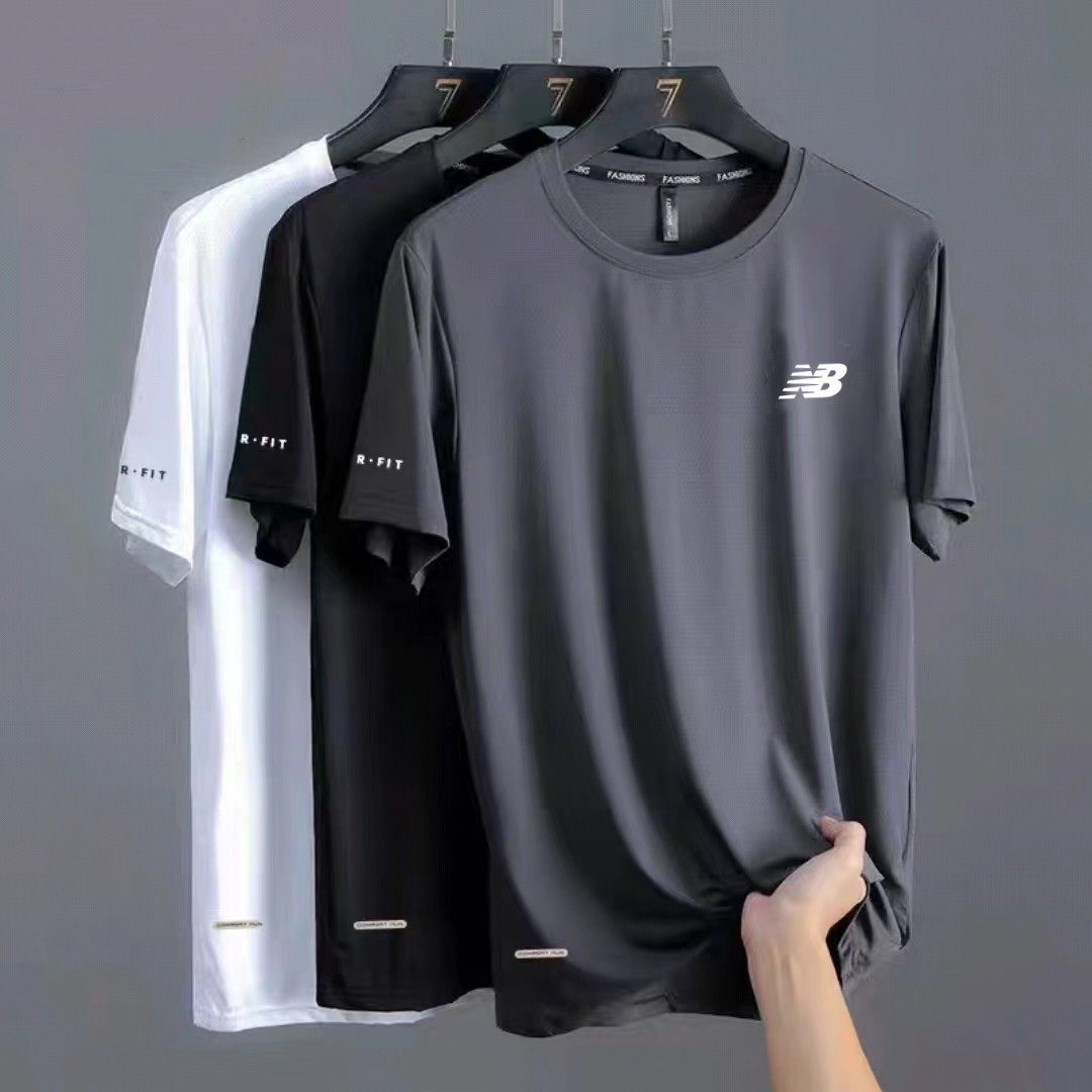 Summer Ice Silk Short Sleeve T-Shirt Men's Thin Breathable Crew Neck Outdoor Plus Size Running Sports Half Sleeve Quick Drying Top