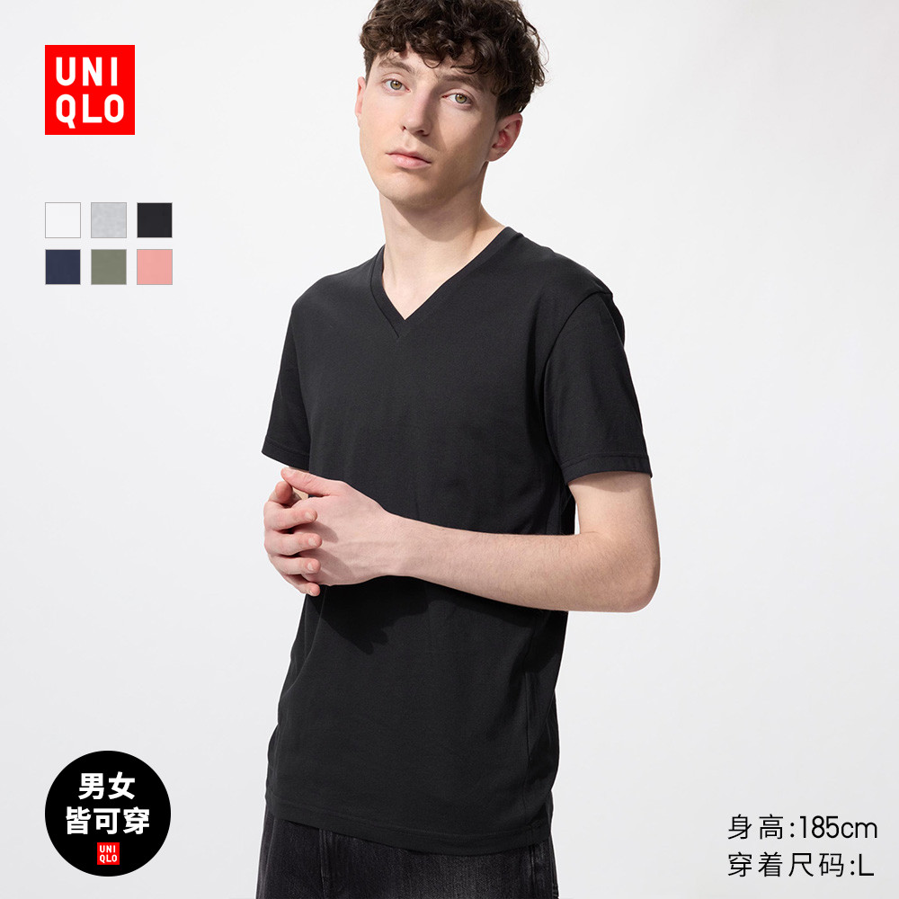 Uniqlo Men's Women's Quick Dry V-Neck T-Shirt/Short Sleeve 26 Spring/Summer New 484845