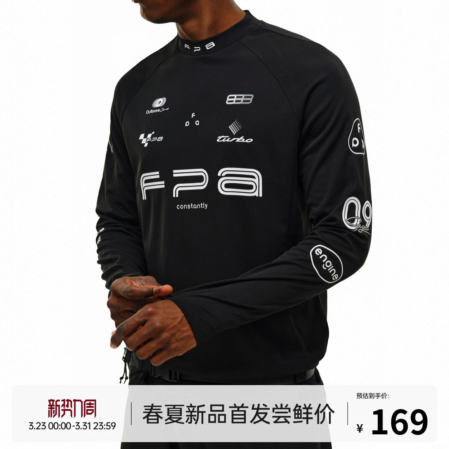 FPA moisture-wicking quick-drying semi-turtleneck bottom long sleeve spring outdoor sports and leisure print white black T-shirt for men