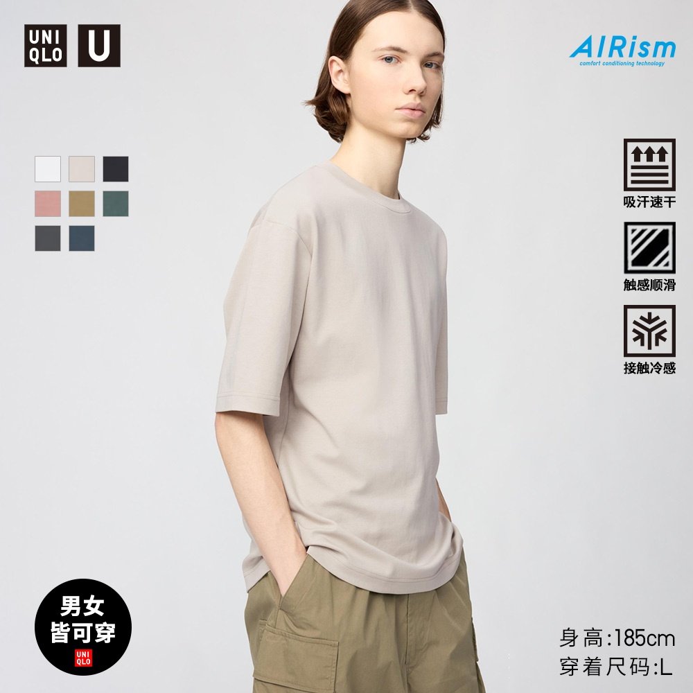 Uniqlo collaboration men's and women's coolness master T AIRism loose crew neck T-shirt 5-quarter sleeve short sleeve 482295