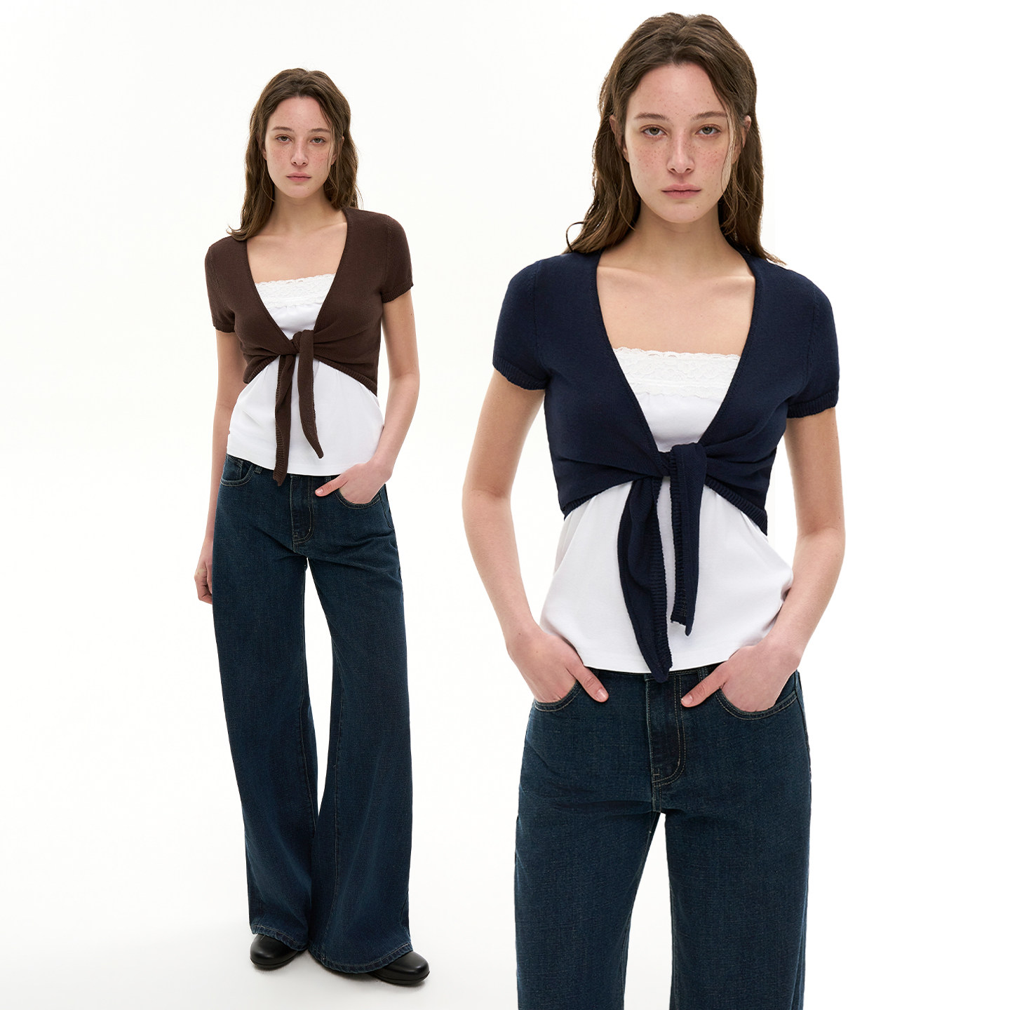 HEYABC BM style Korean strap-on knitted cardigan lace bandeau two-piece women's 2026 spring/summer versatile top