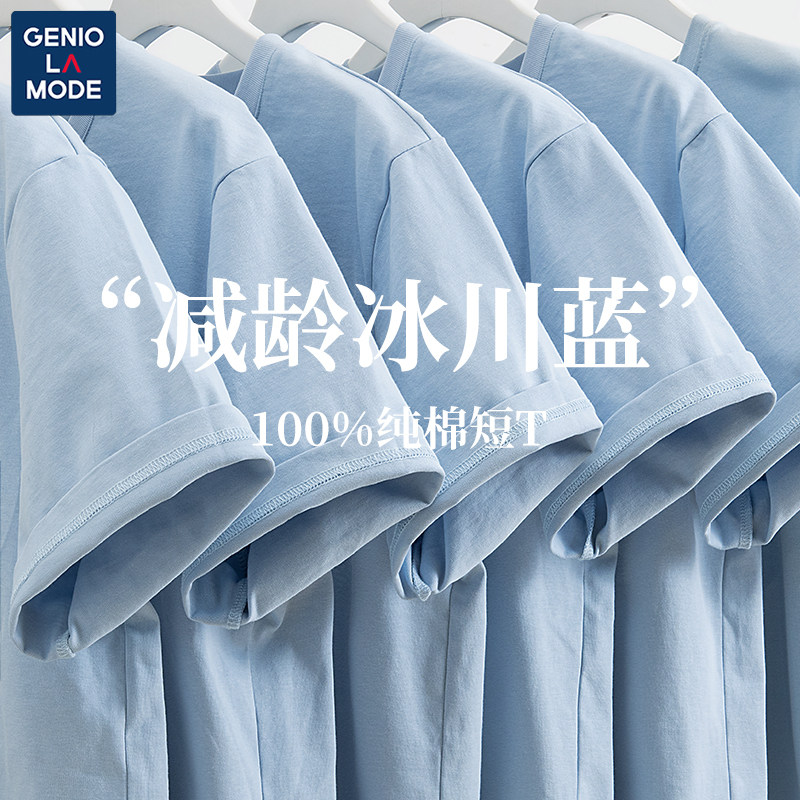 Genio Lamode Glacier Blue Short Sleeve T-Shirt Men's and Women's Summer Pure Cotton High-End Niche Loose Half Sleeve Top