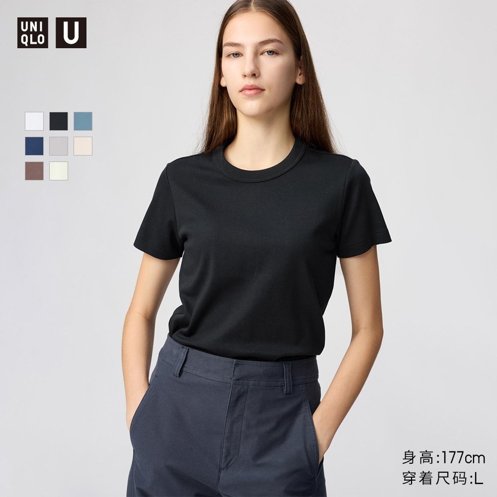 Uniqlo collaboration women's fashion master T-round neck T-shirt short sleeve front shoulder plain white T474404
